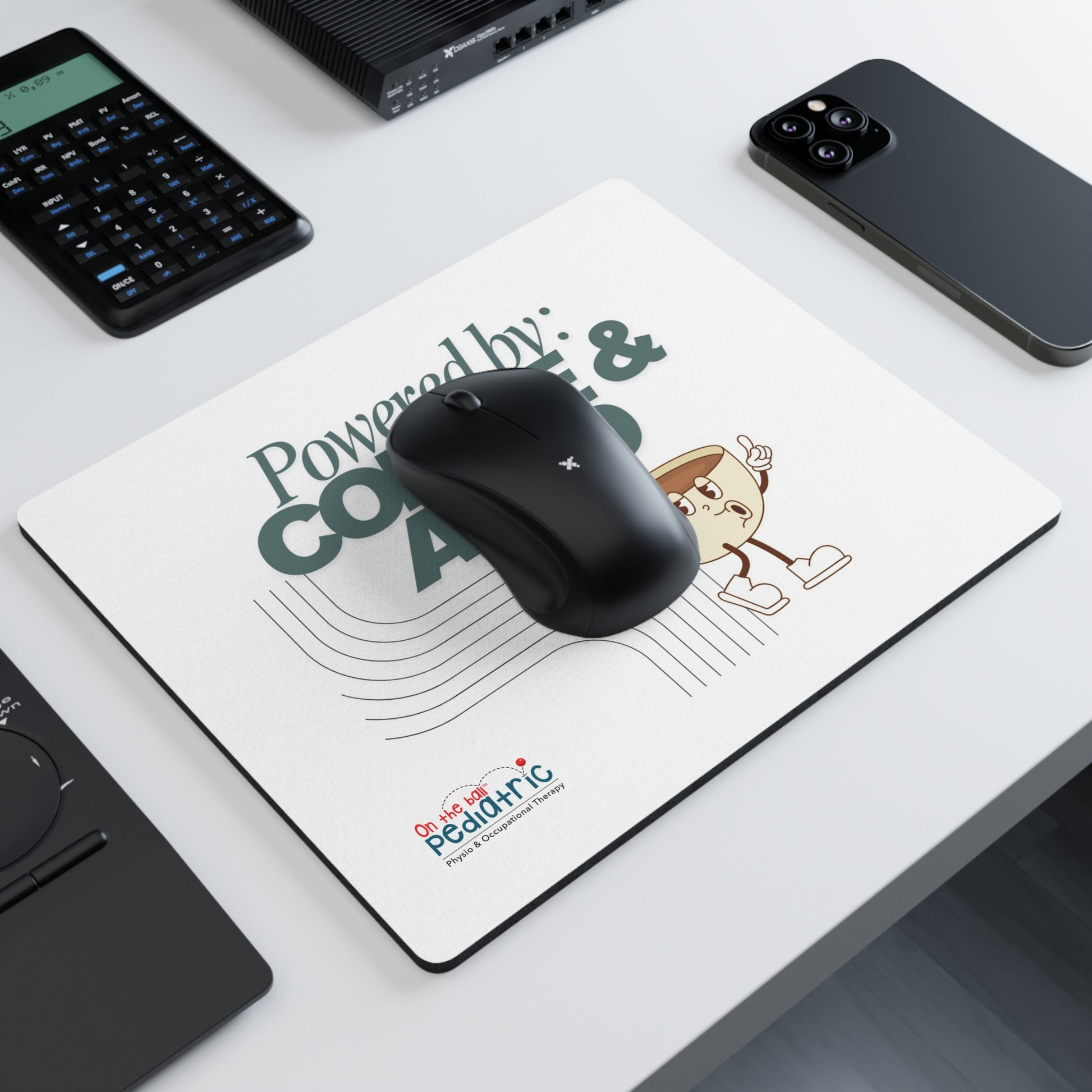 A funny mouse pad powered by coffee & ADHD, designed by On the Ball Pediatric. A portion of profits from this mouse pad go to helping families access OT and PT in Ottawa. This vibrant and colorful mouse pad is perfect for those looking to add some humor and personality to their workspace. Ideal for coffee lovers and those with ADHD. Relevant for back-to-school season and office gift exchanges. Product features - Vibrant colors for a fun design - Rubber base for non-slip grip on the desk - Optical-friendly for improved mouse tracking - Rectangular shape measuring 9.3" x 7.8" - Proceeds support families access OT and PT in Ottawa Care instructions - Use warm water and dish soap to clean spots off your pad. It's not necessary to soak the whole pad. For hard-to-clean spots use a soft-bristled brush.
